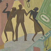 Douglas was an accomplished graphic artist as well as a painter, and he tended to work small (editorial illustrations) or really big (murals). Easel paintings were a rarity in his career, although that’s how many painters of the era were working. You can find some of his murals at Fisk University (Nashville) and Bennett College (Greensboro, NC). His famous mural series Aspects of Negro Life is now in the collection of the New York Public Library.