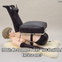 Allen Jones is a British sculptor who was influenced at a young age by psychology. (You can always tell if an artist likes Freud by how many naked women appear as furniture in their body of work.)