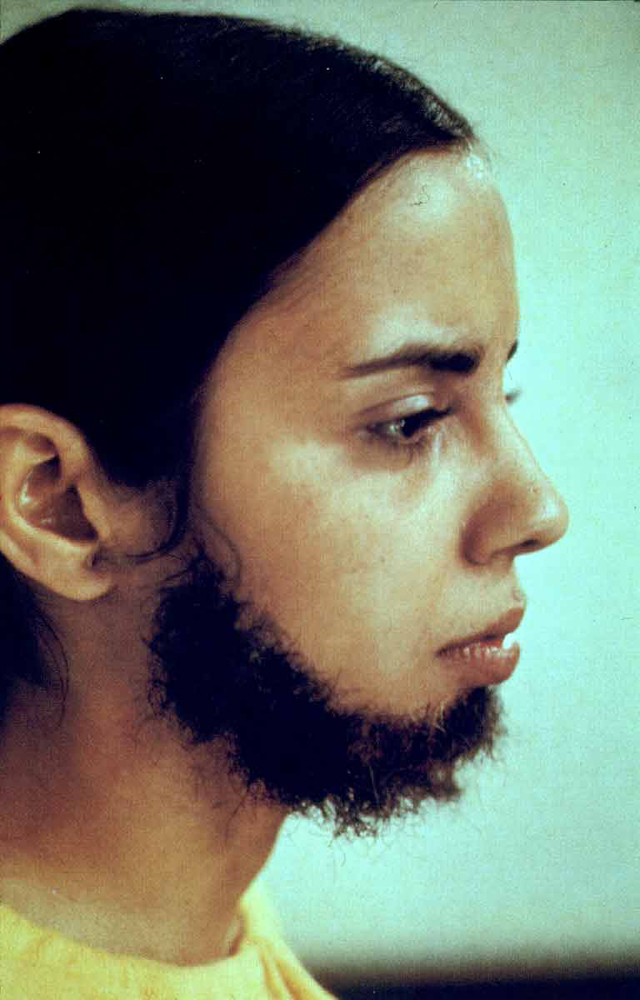 As an artist, Ana fearlessly made and did whatever she wanted, from a simplistic and beautiful photo of herself naked and covered in white flowers in a tomb, to gluing a fellow student’s shaved beard hair carefully onto her own face to make a very convincing fake mustache (now that’s just unsanitary). After a female student was raped and murdered on her college campus, many of her pieces began to focus on violence towards women, often featuring blood and disturbing but impactful imagery of rape and murder. Remember this for later.