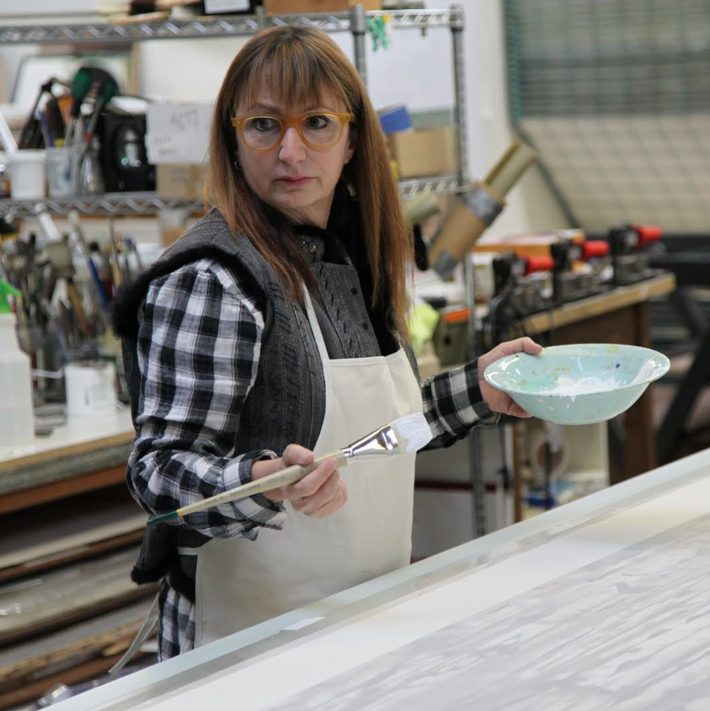 Earlier in her career, she mostly produced paintings from already found images, but over the years has evolved to incorporate digital technology. Since 2017, she has collaborated in making video art with Andy Rappaport.