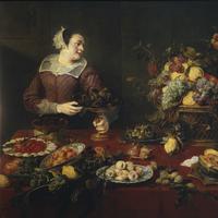 Frans Snyders or Frans Snijders (11 November 1579 – 19 August 1657) was a Flemish painter of animals, hunting scenes, market scenes, and still lifes. A versatile artist, his works depict all sorts of foods, utensils, and tableware and wide assortment of animals. He was one of the earliest specialist animaliers and he is credited with initiating a wide variety of new still-life and animal subjects in Antwerp. His hunting scenes and still lifes engage the viewer with their dramatic and dynamic effects. He was a regular collaborator with leading Antwerp painters such as Peter Paul Rubens, Anthony van Dyck, Jacob Jordaens, and Abraham Janssens.