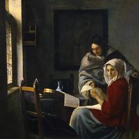 Vermeer's oeuvre was the subject of a national scandal for the Netherlands. A master forger, name of Van Meergeren, claimed to have discovered painting after painting by Vermeer in a style previously unknown. One such fake, a painting of Jesus revealing himself to his disciples post-Resurrection, was declared Vermeer's greatest masterpiece. The Dutch government bought it up for a fortune to keep it from leaving the country. Woops.