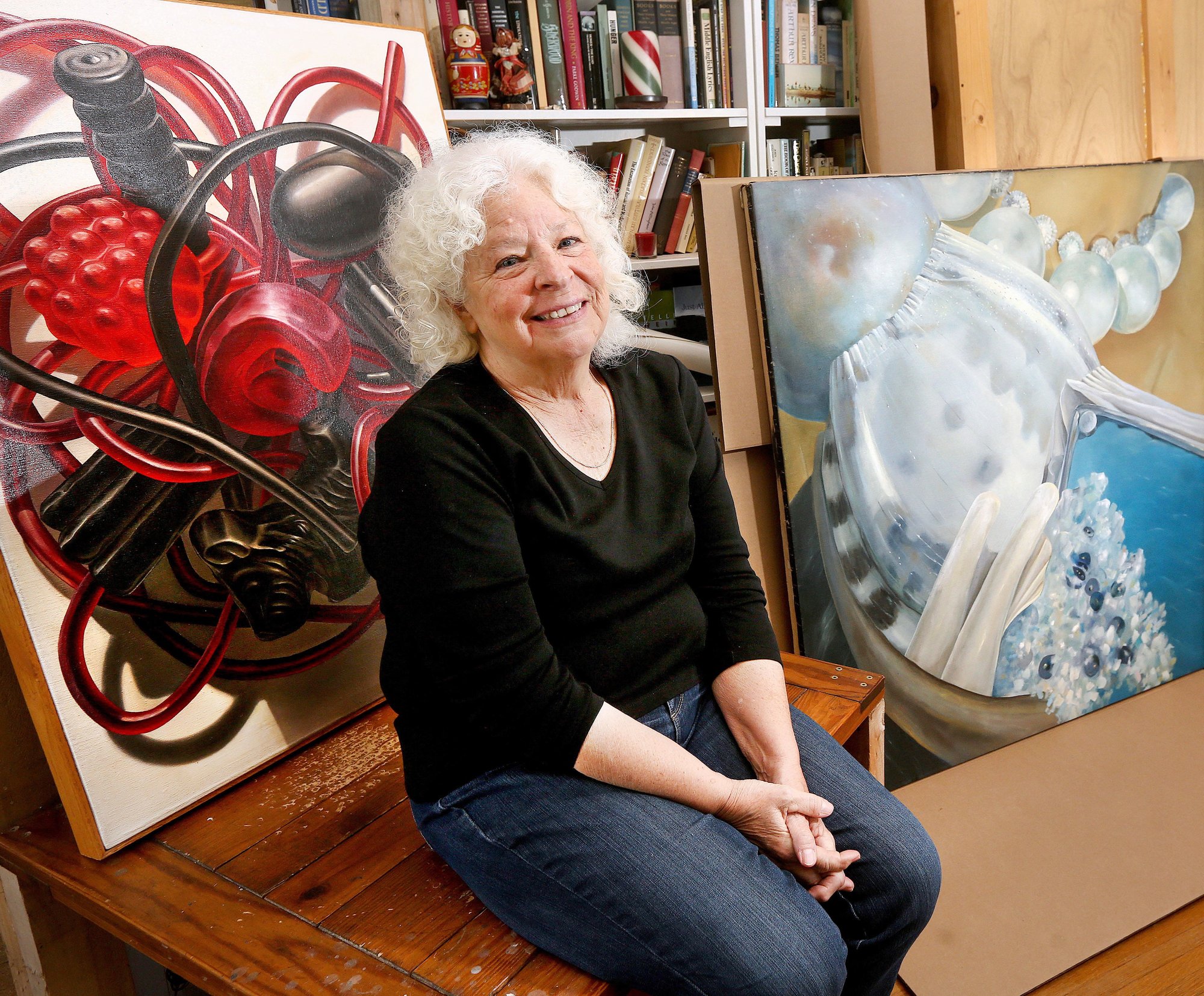 When fame in the form of the Chelsea-based Albertz Benda gallery came knocking, Kurt was just starting to wonder what she was going to do with her up to 5 x 12 foot paintings. Luckily all of her works are now being sold and exhibited in New York, San Francisco, London etc., so she doesn’t have to deal with them. She has now learned just how convenient it is to be famous. But she hasn’t let it all go to her head. As she is now in her 70s she has decided not to just drop everything, move to New York and be famous. She has stayed put and prioritized her family, friends and fun. But a Duluth style of fun which is made up of getting moose hunting permits with her son, berry- and mushroom-picking, fishing and tubing behind a boat.