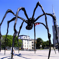 Her artwork dealt with themes of betrayal, sexuality, vulnerability, and power. Loaded with bodily images, sensual but grotesque, sexually ambiguous. Fragile and fierce. Sexual repression and great sexual promiscuity. One of her installations depicted her father being devoured for dinner. She was petite in size but gruff in voice and manner and had a wonderfully deep French accent.