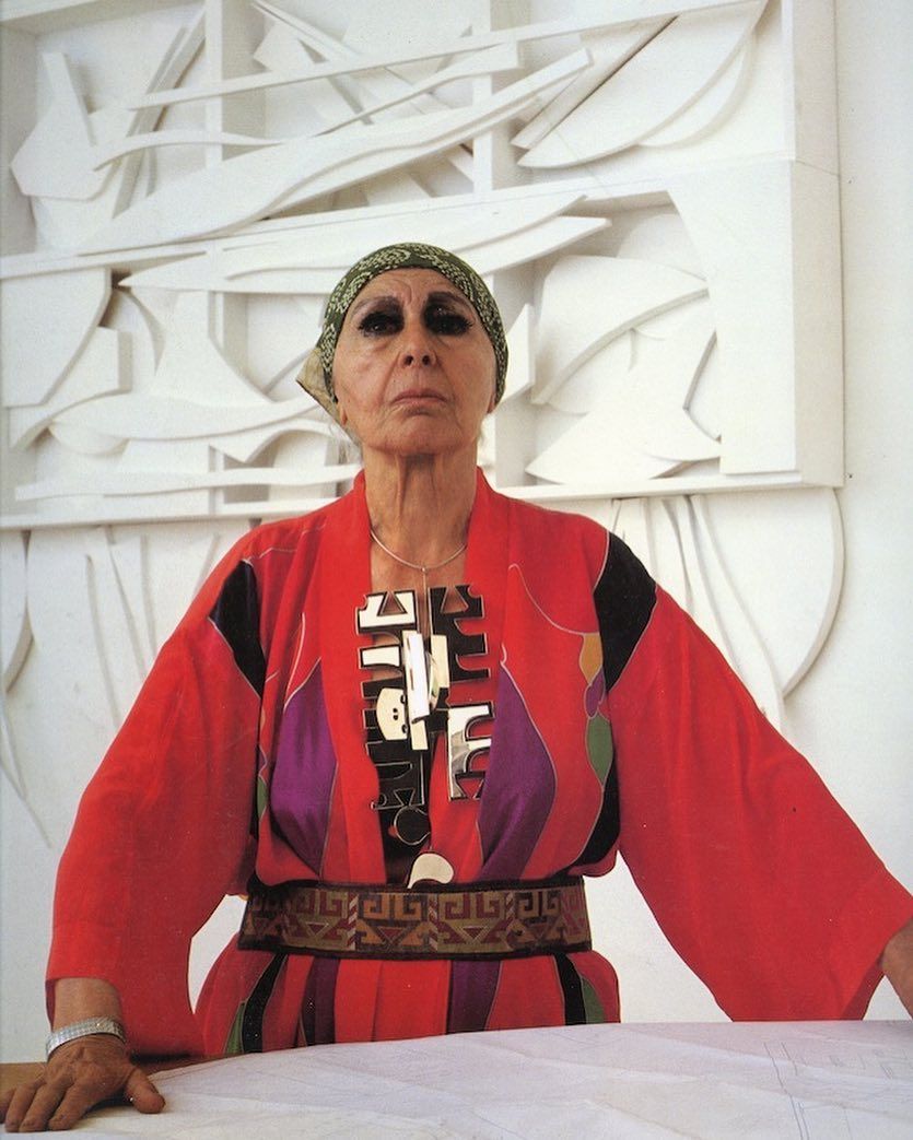 Apart from her spectacular sculptures, Nevelson is known for her impeccable sense of style. An admiration for timber isn’t the only thing in the family veins. Her mother, Minna, created an armor against social rejection (being the only Russian Jewish family in their community) by clothing herself and her daughters in expensive, fashionable clothing. Nevelson retained this sensibility as an adult, earning the nickname “the Hat” thanks to all the fabulous chapeaux she wore.