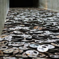 An installation of a herd of live white sheep, which Kadishman painted with a blue stripe on the back, was the talk of the town in Venice during the Biennale of 1978. Blue and white are the colors of the Israeli flag.
