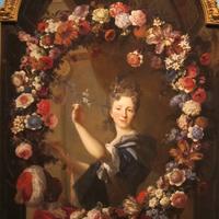 He was educated among the Dutch masters of Antwerp before moving to England where he became an assistant in Sir Peter Lely’s studio. He found favor with the courts of Kings Charles II and James II, but fled England for France, fearing anti-Catholic discrimination. Largillière was more at home amongst his Catholic, rococo-loving countrymen...especially the fabulously wealthy Parisians for whom there was no such thing as "too much." Indeed, with the plethora of lapdogs, parrots, peacocks, exotic animal pelts, enslaved African children, cherubs, gilded furniture, brocaded drapes, enormous vases and gaudy statues that appear in his portraits…finding the sitter among their material possessions can seem a little bit like looking for Waldo in a Persian furniture store.