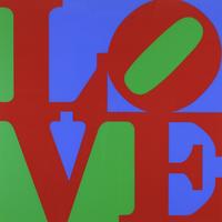 Indiana is mostly known for his iconic image LOVE which was first created in 1964 in the form of a card. Indiana sent these cards to several friends and acquaintances in the art world. In 1965, Robert Indiana was invited to propose an artwork to be featured on the Museum of Modern Art's annual Christmas card. Indiana submitted several 12” square oil on canvas variations based on his LOVE image. The museum selected the most intense color combination in red, blue, and green. It became one of the most popular cards the museum has ever offered. Indiana continued to develop his LOVE series, and in 1966, worked with Marian Goodman of Multiples, Inc. to make his first LOVE sculpture in aluminum. In 1970, Indiana completed his first monumental LOVE sculpture in Cor-Ten steel which is in the collection of the Indianapolis Museum of Art.