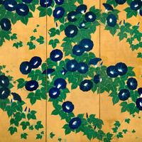 Kiitsu is best known for his byōbu folding screens, often a reinterpretation of screens by other Rinpa artists, such as his massive Wind God and Thunder God following Tawaraya Sōtatsu (c. 1570 – c. 1640), Ogata Kōrin (1658–1716) and Hoitsu. But he has been most acclaimed for his original screens, including his famed Morning Glories and Mountain Stream in Summer and Autumn.