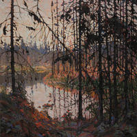 Thomas John Thomson (August 5, 1877 – July 8, 1917) was a Canadian artist active in the early 20th century. During his short career, he produced roughly 400 oil sketches on small wood panels and approximately 50 larger works on canvas. His works consist almost entirely of landscapes, depicting trees, skies, lakes, and rivers. He used broad brush strokes and a liberal application of paint to capture the beauty and colour of the Ontario landscape. Thomson is considered by many Canadians as the archetypal painter, and his later work has heavily influenced Canadian art – paintings such as The Jack Pine and The West Wind have taken a prominent place in the culture of Canada and are some of the country's most iconic works. His accidental death by drowning at 39 shortly before the founding of the Group of Seven is seen as a tragedy for Canadian art.
