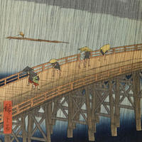 Throughout his career, Hiroshige struggled to make ends meet. Sketching specific landscapes required lengthy, expensive trips all over Japan, and his prints sold on the side of the road for about the price of a bowl of noodle soup. His wife sold her own clothing and ornate hair combs to support his craft. The upside of his prints’ cheap distribution, however, was that they circulated widely and quickly via Japan’s trade routes. Over 25,000 reproductions of 8,000 distinct images made their way into the hands and homes of the Japanese population, and his beautiful renderings of seasonal landscapes were massively popular. Once the warden of Edo fires, he soon became known as the “artist of rain, snow, and mist.”