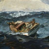 Soon came the Civil War, in which Homer got his first prominent exposure recording scenes of harrowing violence as well as daily life in camps and on the homefront, notably including the experiences of women and African Americans. After the War his interest in female subjects flourished with scenes of fashionable ladies at play on beaches and croquet fields, but Homer’s preoccupation with pretty society girls was about to shatter.