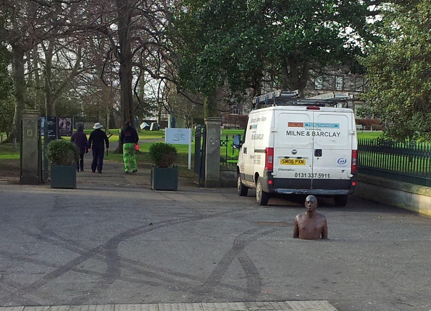Gormley is an Englishman. With exactly WHAT? connection to either Edinburgh or its river except, of course, that he cashed a big fat cheque of Edinburgh-money for this commission. For six statues of himself. Naked ones. Unbelievable, but it happened.
