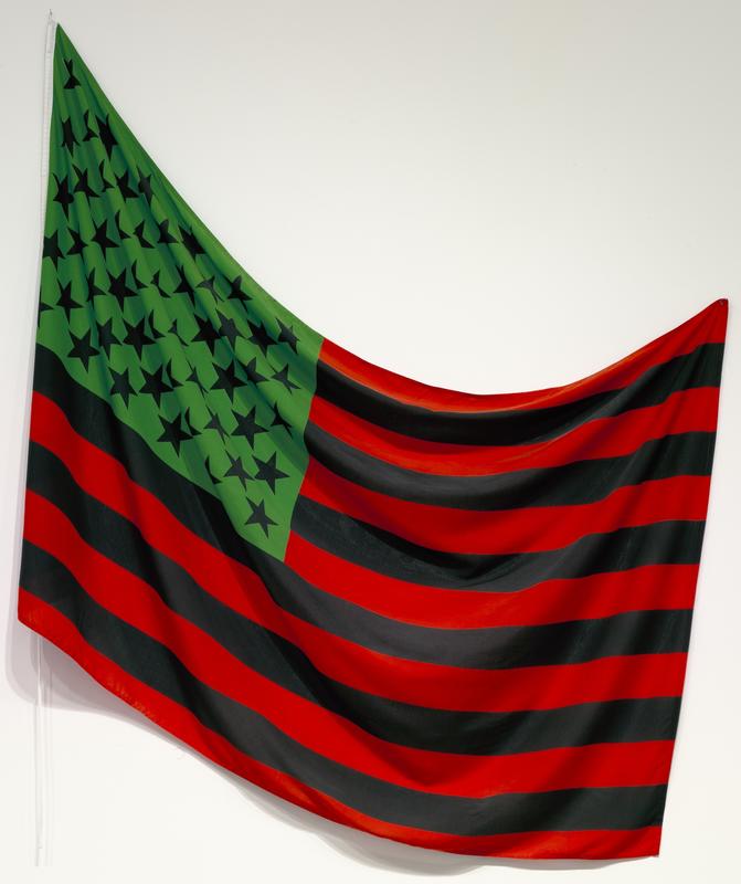 It was first created for the art exhibition "Black USA" at an Amsterdam museum in 1990, and its first edition was of five flags, which are now in major museum collections.
