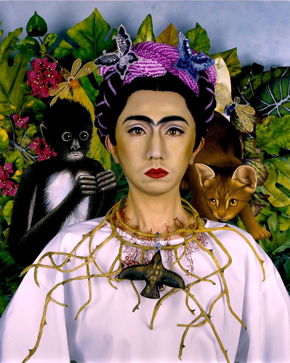 The artistic spawn of Cindy Sherman, Yasumasa Morimura has obviously mastered the art of impersonation in An Inner Dialogue with Frida Kahlo (Collar of Thorns).