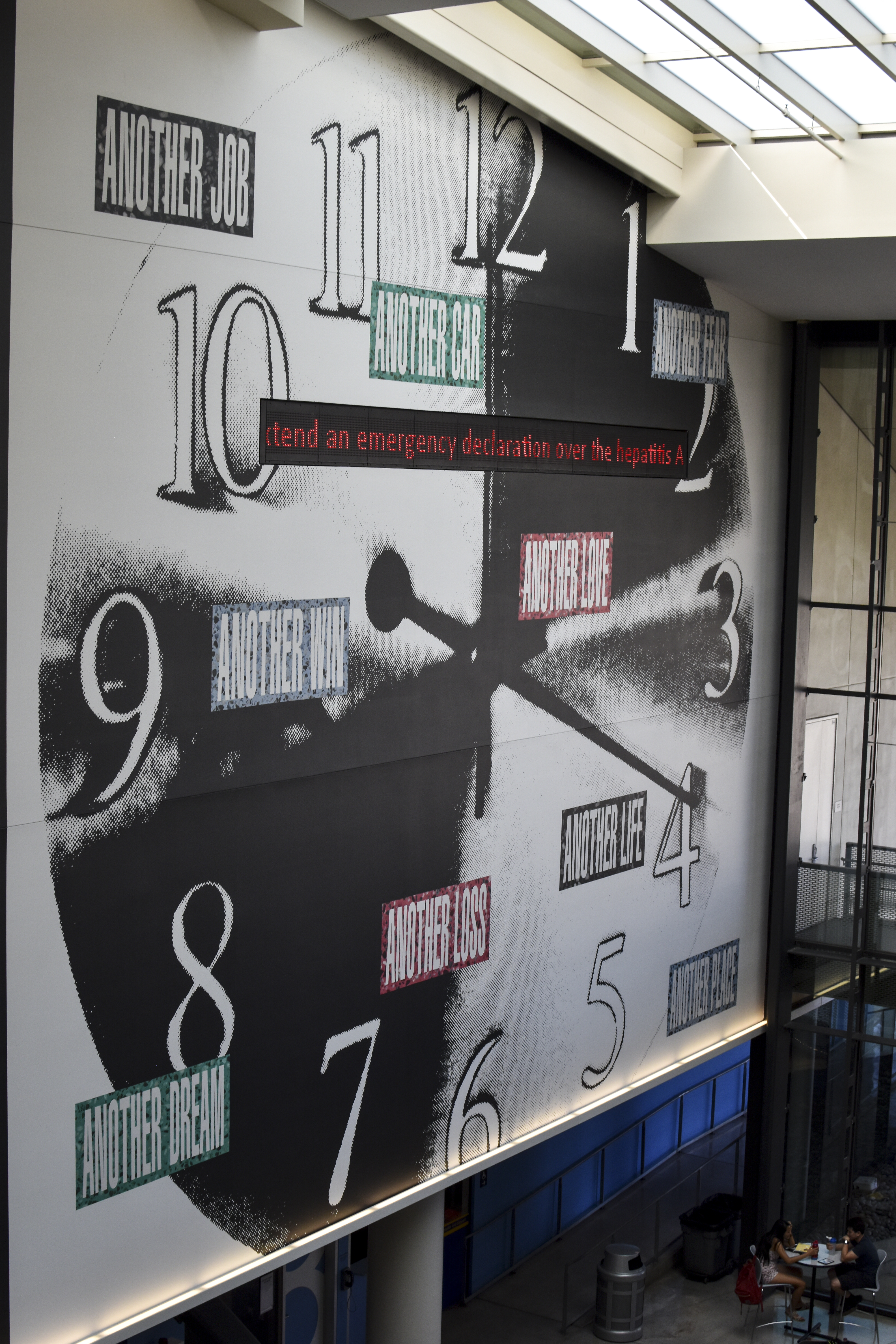 Located in the Price Center East, a place where students, eat, hang and study, Kruger’s Another towers over said students and reminds them that their time on Earth is both repetitive and boring. The piece is made up of two ginormous clocks with text like "Another day," "Another dream," "Another place," "Another loss," "Another job," "Another love," "Another dollar," and "Another game." It also has a screen that constantly streams national and international headlines. It kind of makes all of life seem pointless, which of course it is, because we are tiny specks of dust on a slightly larger speck of dus. And where better to remind students of that than a place where they must go every day?!