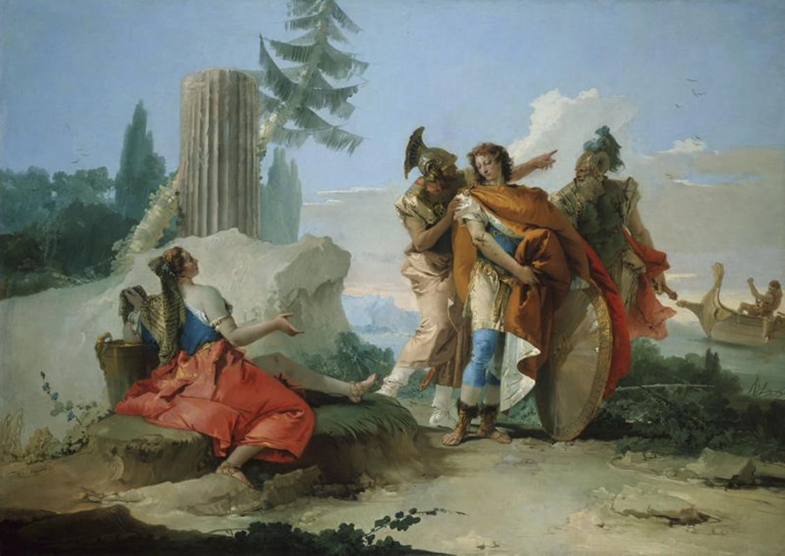 This painting is part 3 of 4 in a series done for the Venetian palace of the Cornaro family based on Torquato Tasso’s poem Jerusalem Liberated. The scene preceding this one is when Armida brings Rinaldo to her love garden, and the scene following this one is a magician showing Rinaldo how manly his ancestors were, encouraging him to live up to their manly example. But I don’t really get how leaving a pretty lady who willingly exposes an entire limb to you in order to join up with a bunch of sweaty men fits with the heteronormative idea of “manhood” that is supposedly being portrayed in this story. Dude, embrace your femininity and open yourself to love instead of being a racist douchebag.