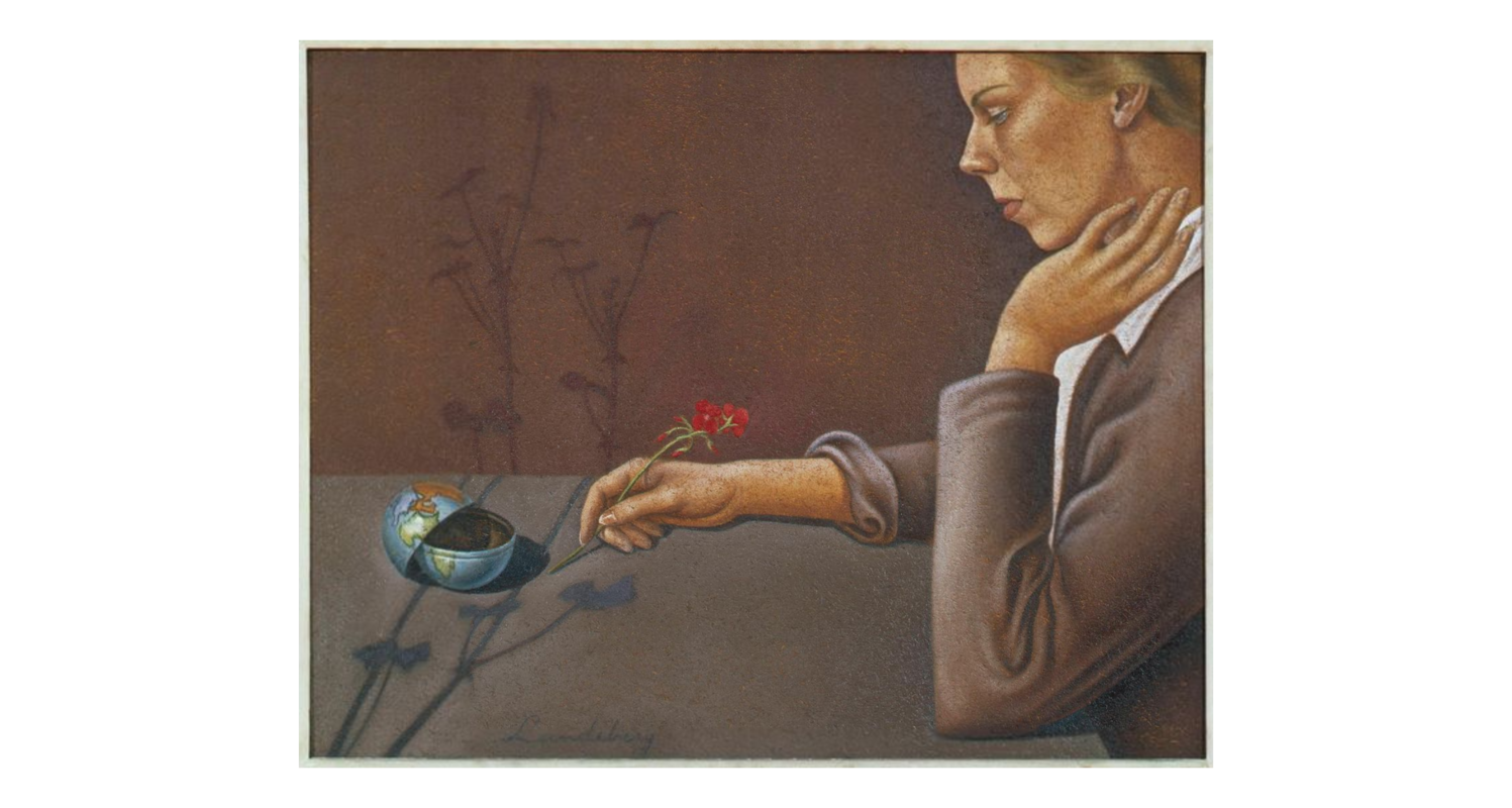 This piece is part of an art movement that Lundeberg created (such a slacker), called Post-Surrealism. The movement was derivative but had little to do with its predecessor, Surrealism, which was completely based on the irrational. Post-Surrealism doesn’t quite have the same “WTF is this? I don’t get it” general reaction. Lundeberg, who wrote the manifesto for Post-Surrealism “was interested in a poetic contemplation of subject matter that would bring the viewer to a higher understanding of metaphysical ideas and a deeper experience of the world.” The deeper experience of the world here is a little grim seeing as the world is literally broken in half but c’est la vie.