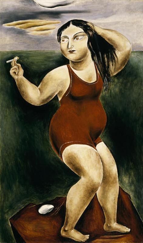Artists from all fields and backgrounds have drawn inspiration from the endless hilarious scenarios that unfold on the beach, producing works that are not only great art but also entertaining. Bather with Cigarette, just like Kuniyoshi's other early paintings, is a humorous yet critical take on Western culture, seen through the eyes of someone who grew up in the East. Having immigrated to America from Japan in his teens, Kuniyoshi identified as American while his Japanese roots continued to shape his art. The result is a distinctive visual style influenced by American folk art, Japanese design, and European modernism.