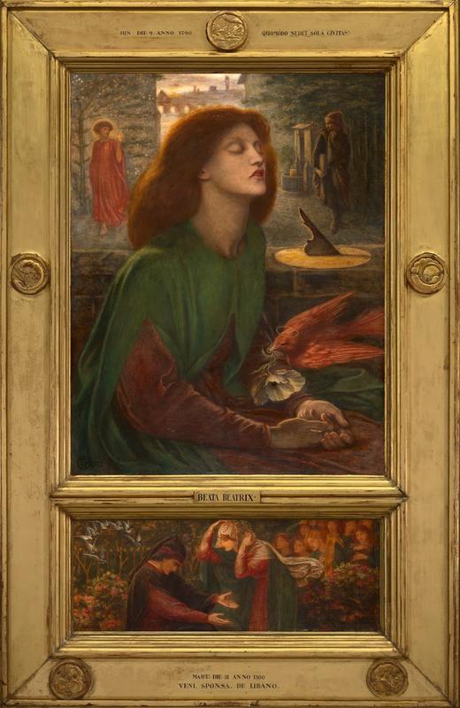 This painting, which was commissioned by William Graham, is not the only of its kind. There are copies out in the world, namely the one at the Tate, but this is the only one with a predella, the little baby painting underneath the big painting that shows Dante and Beatrice reuniting in paradise. As the Art Institute Of Chicago suggests, “With this addition, Rossetti provides the medieval love story with a happy conclusion, perhaps suggesting that he, too, had begun to come to terms with his own profound grief.”