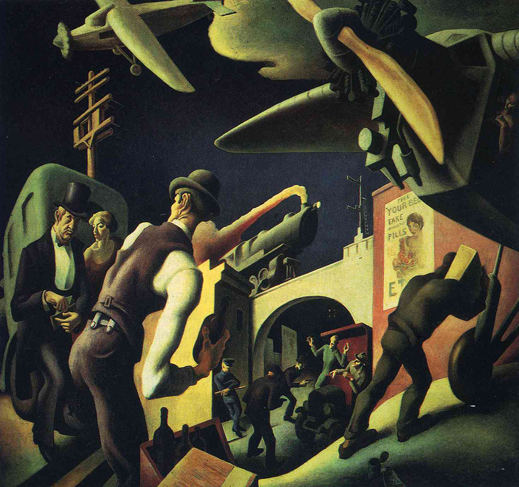 Benton recognizes this as the work that began his obsession with capturing contemporary moments in order to chronical daily American life as the history it would soon become, a theme that would eventually define his career. It is therefore not at all surprising that the painting places such an emphasis on the machinery used in the bootlegging process. The plane in the foreground speaks to the country’s growing love of air travel, 1927 being the year that Charles Lindbergh flew the Spirit of St. Louis over the Atlantic and more importantly this was painted! Benton purports to have spent hours filling notebooks with sketches of planes, trains, and automobiles, an artistic vision which directly inspired the 1987 John Hughes comedy classic. (I'm just kidding, this painting in no way influenced the 1987 comedy classic film Planes, Trains, and Automobiles.)