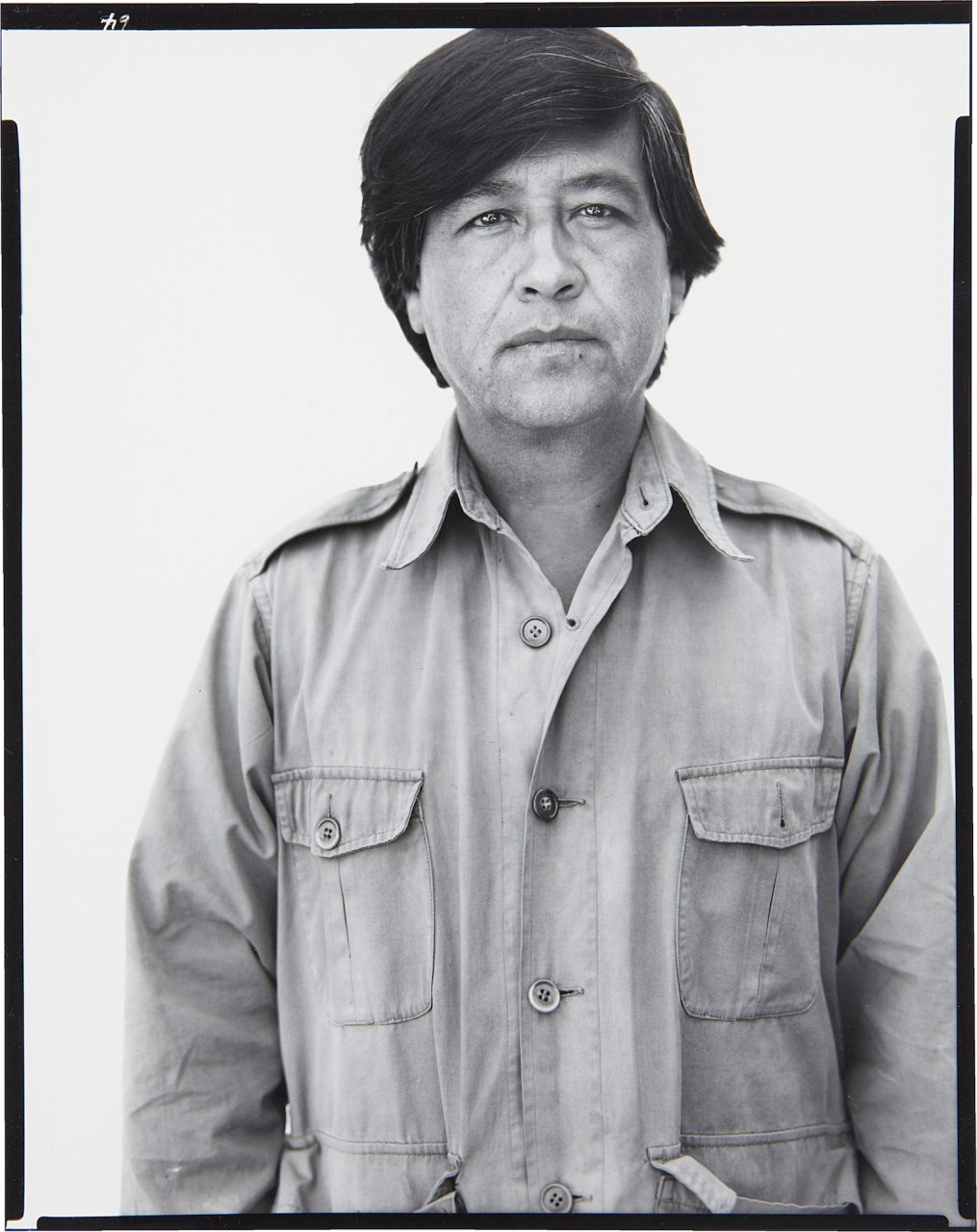 Avedon's photographs have an intimate connection to his high-school friend and collaborator, the novelist James Baldwin. In the work of both artists, there is a sense of searching for the "evidence of things not seen," the truth beyond the limit of representation. In César Chávez, Avedon portrays a union activist whose work is in the midst of a major crisis. Attempting to pass California Proposition 14, which would have allowed union organizers the right to recruit workers on private property, Chávez is also fighting for the image and structural integrity of his United Farm Workers union. In November of the year of Avedon's portrait, the voters would reject the proposition, marking a major turning point and loss of influence for Chávez, the UFW, and workers' rights.