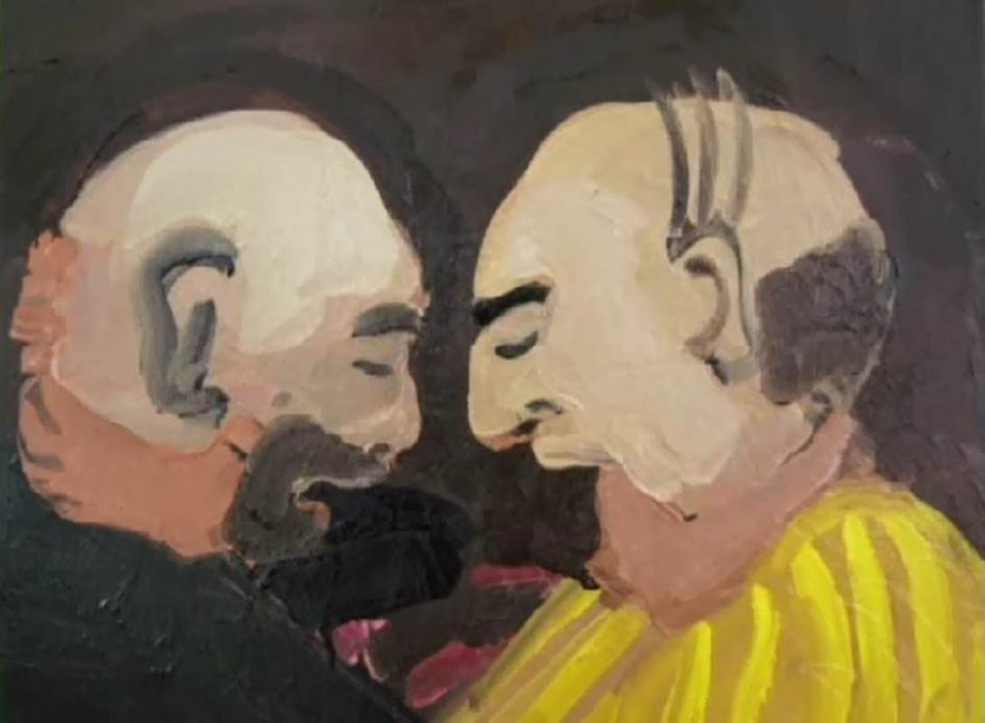 Chit Chat by Tala Madani appears to be a silent, stop-motion painting video of men mansplaining to each other until they vomit.