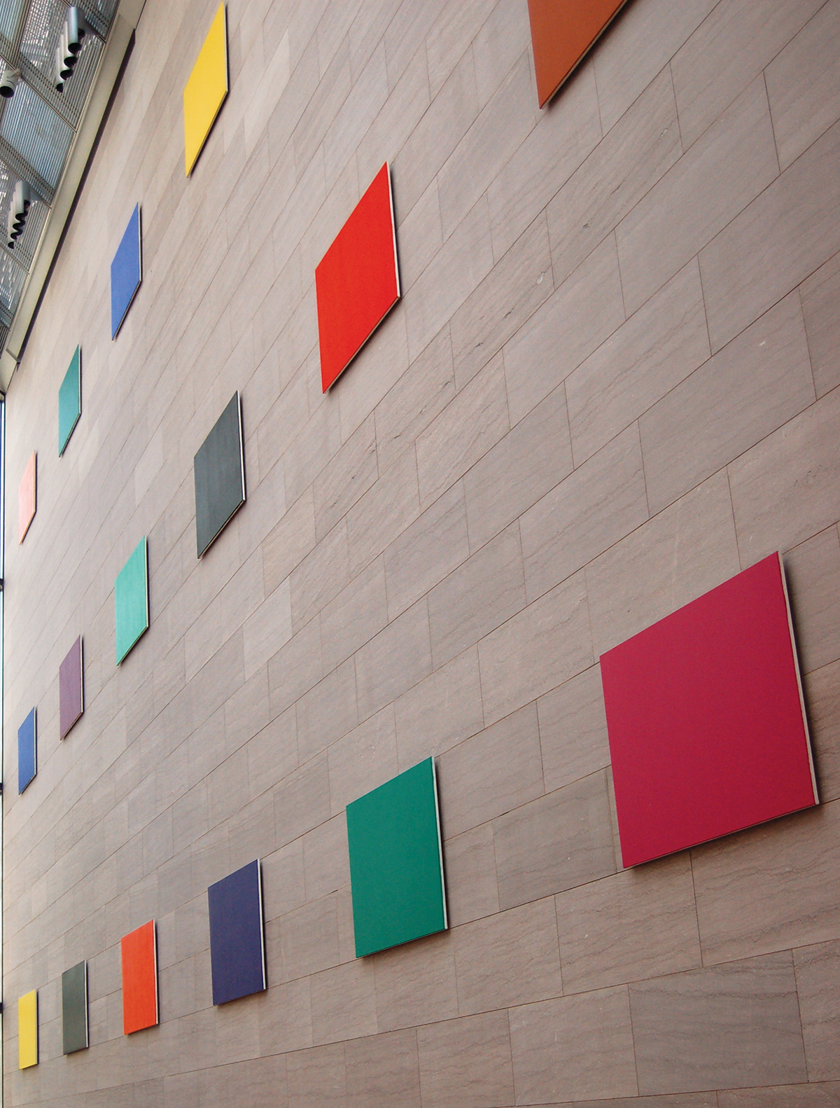 Kelly’s flexible approach definitely worked out for him. Unlike Tilted Arc, Color Panels for a Large Wall didn’t have to be destroyed to find a new home. As an added bonus, Kelly has said he prefers the new grid configuration of it’s second installation.