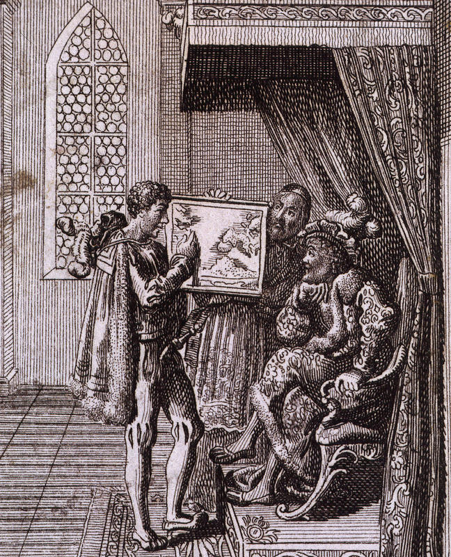The artist Daniel Nikolaus Chodowiecki is known for his apathetic treatment of historical episodes. He wasn’t very good at getting into the moment, but try he did. This etching definitely has some of the Chodowiecki humor everyone’s always talking about. Columbus looks young and hopeful, almost naive. He appears to be nervous, but also aggressive. The King, on the other hand, reclines casually, rapt with attention. The two figures are interrupted by a third, suspicious, advisor-type person. He won’t let Columbus get any closer, and he’s definitely going to advise the King against this expedition. So, who did the King listen to?
