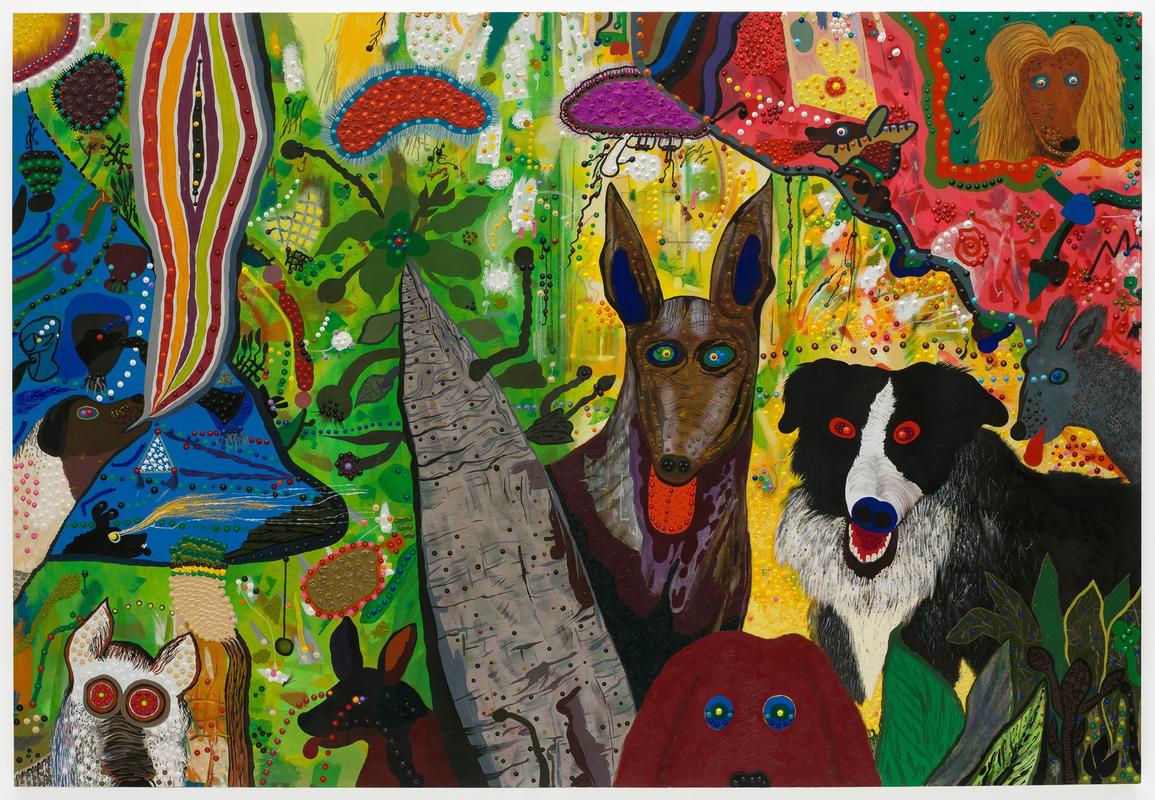 Pooches, galore! The crazy-eyed dogs featured in Roy De Forest’s Country Dog Gentlemen stare into the depths of our souls, just begging to be petted.