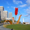 Cupid’s gigantic arrow pierces a hill near the water, imbuing our little city with affection. He’s supposed to be a baby, but I guess Oldenburg imagined he brought in the big guns for us. Probably to assuage angry Giants fans.