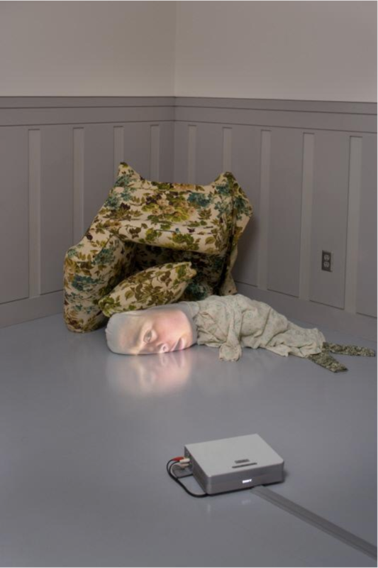 Or perhaps you are one of those more sympathetic souls who feel for the twisted cyborg-esque creatures that live in Oursler’s installations. Surely this lady, having survived the depths of Oursler’s mind and having her head squished by the weight of an armchair, deserves a few sympathy points.