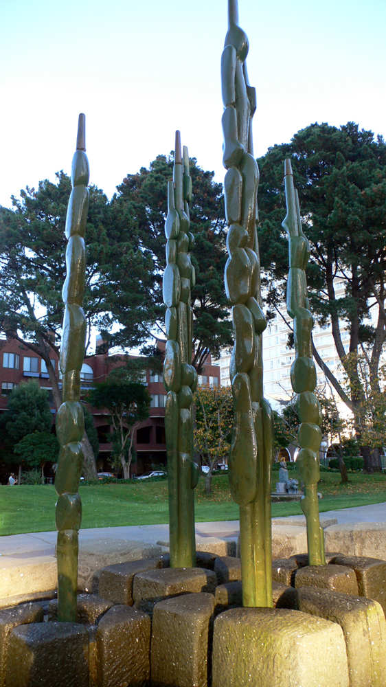 Perini-Alcoa's competition would decide how exactly to spend the $1 million in funding mandated by the city's redevelopment committee, and to litter art across Sydney G. Walton Square, the park Golden Gateway set up between its living communities. At eighteen feet tall, Stahly's Four Seasons is far and away the largest representations of asparagus in the park. Shoot, maybe the tallest asparagus stalks in the entire city. The lumpy spouts are so tall that folks in the surrounding office spaces and apartments use their shadows as a kind of sundial throughout the day. Although, for real, if you're living or working in that part of the city you can afford a watch. The fountain was cast in an Italian foundry before being installed, just in case you ever doubted it was fancy as hell. It may not be the strangest or most infamous sculpture along Embarcadero, but it holds its own against other oversized food sculptures we know.