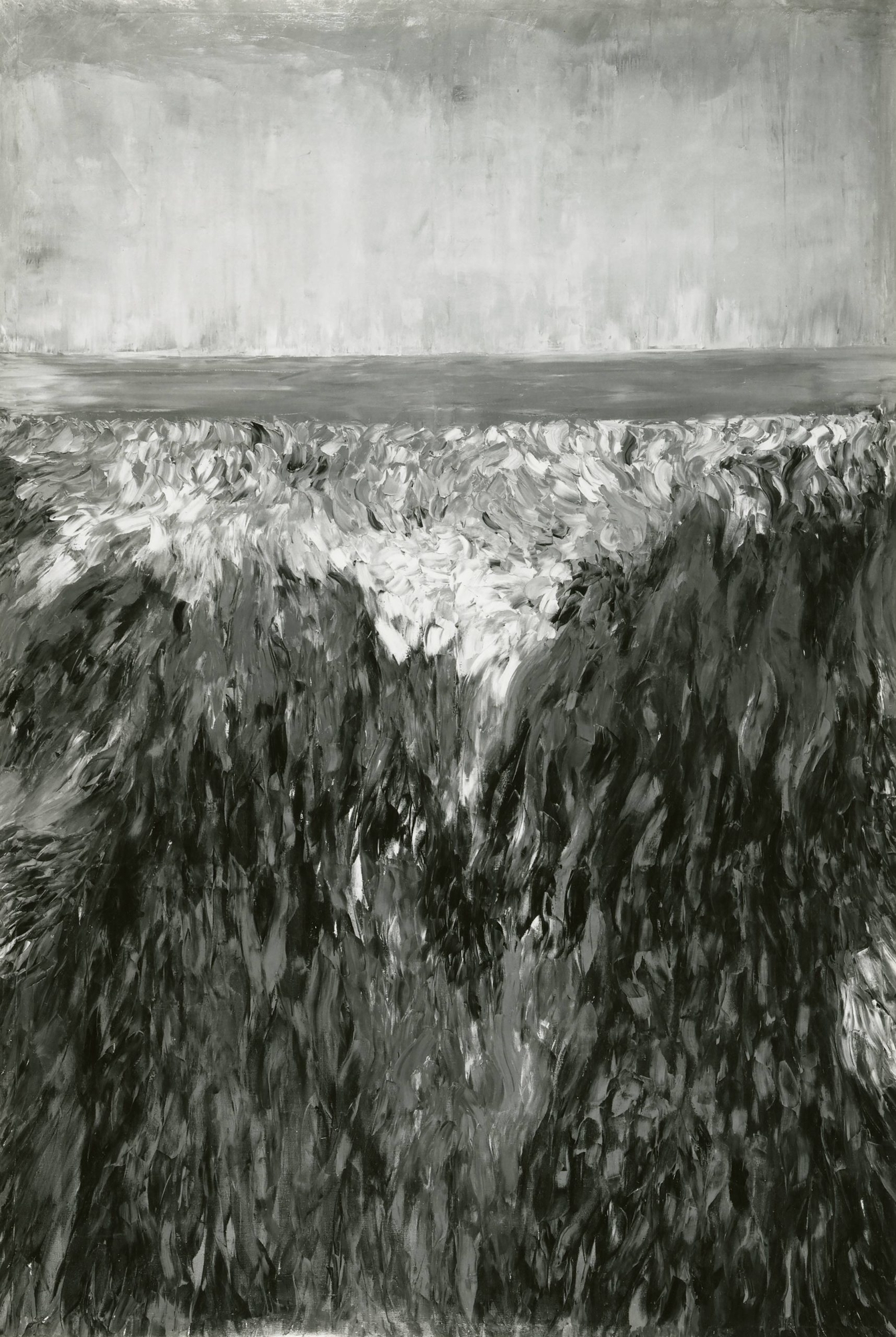 This painting was done in 1957, an era dominated in the United States by Abstract Expressionism. Innovations such as Jackson Pollock’s drip method inspired other artists to experiment with ways of putting paint on the canvas. Here, Gechtoff was perfecting her palette knife technique, known for creating textured images like Starry Night