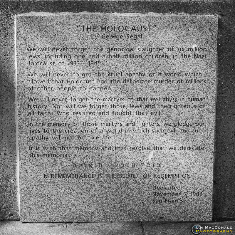 The Holocaust Memorial at California Palace of the Legion of Honor is a Holocaust memorial in San Francisco, California, in Lincoln Park, overlooking the Golden Gate. It was created by artist George Segal out of white painted bronze. In 1981, the city invited Segal to submit a design for its competition; his plaster maquette is held by the Jewish Museum in New York. The bronze cast was installed in 1984.