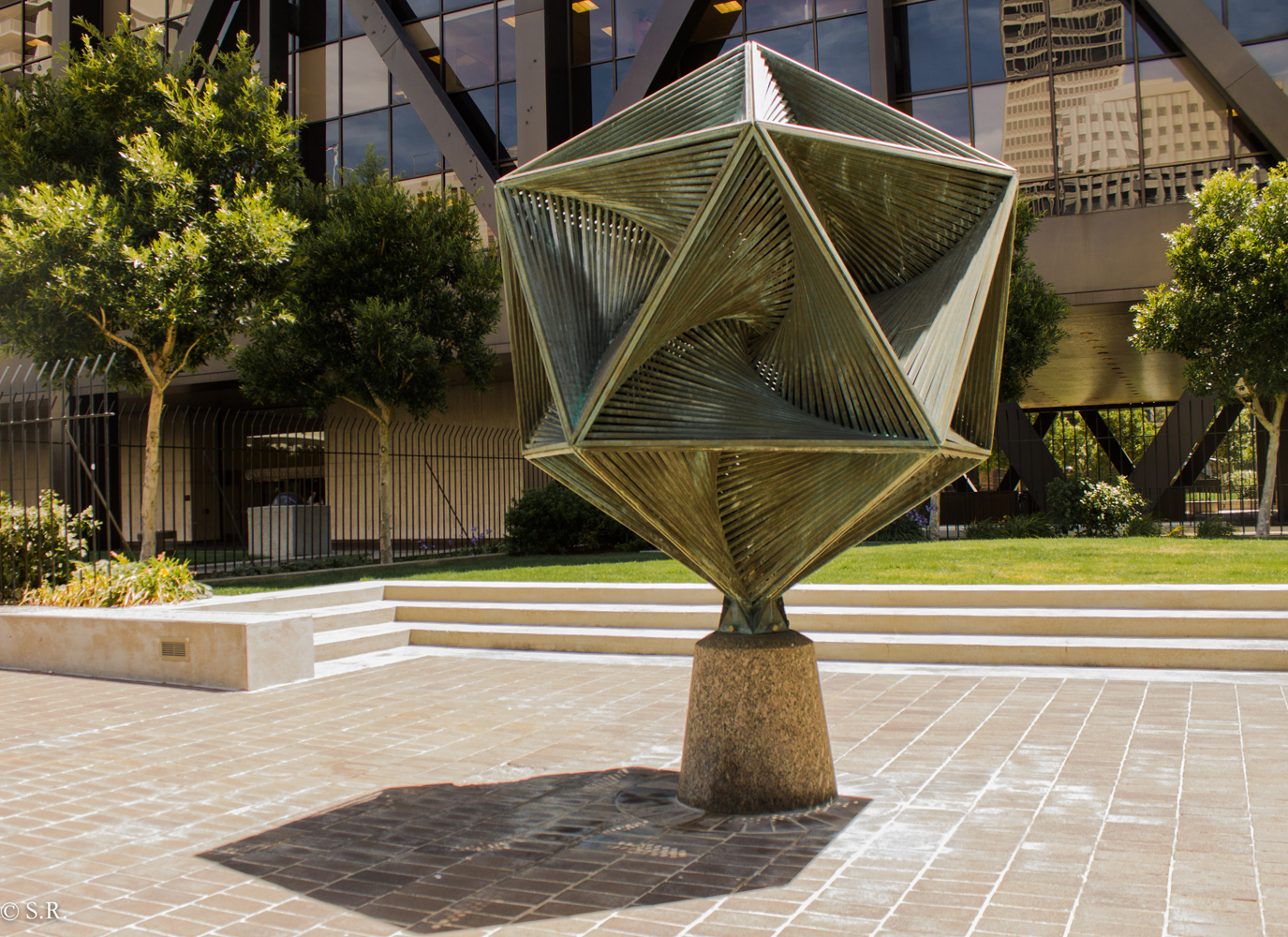 This Charles Perry work gets it's title from the name of the shape the welded-together rods make -- a huge Icosahedron.