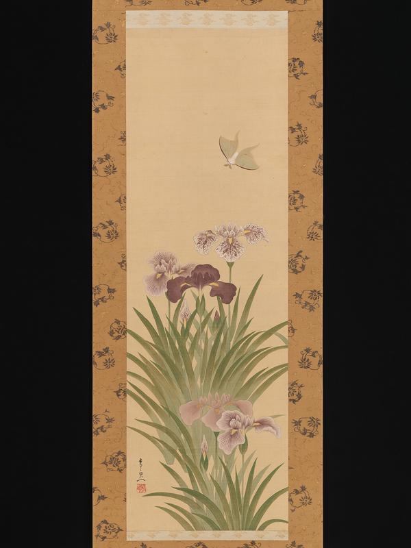 Irises and Moth is just as original as it was when Kiitsu made it, with ink on a silk scroll, around 1850 CE.
