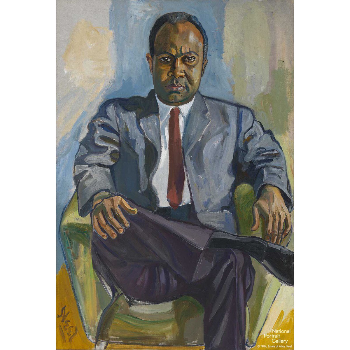 James Farmer founded the Congress of Racial Equality (CORE) in 1942 in Chicago, and based CORE principles on the non-violent protests of Mahatma Gandhi. CORE primarily protested public accommodation discrimination through mass sit-ins. At the time of this portrait, in 1964, James Farmer had been organizing Freedom Rides, a planned effort to end segregation on buses, trains, and waiting rooms. Sadly, three CORE members had been murdered in 1964 in Mississippi. Neel did her best to portray Farmer as “full of anger” in this portrait. Farmer was considered one of the Big Six in the Civil Rights movement and worked closely with Martin Luther King Jr. In 1963. When Louisiana State Troopers were knocking on doors looking for him on charges of “organizing protests,” he famously pulled the badass move of faking his own death, a funeral home director smuggling his living body out of town in a hearse.