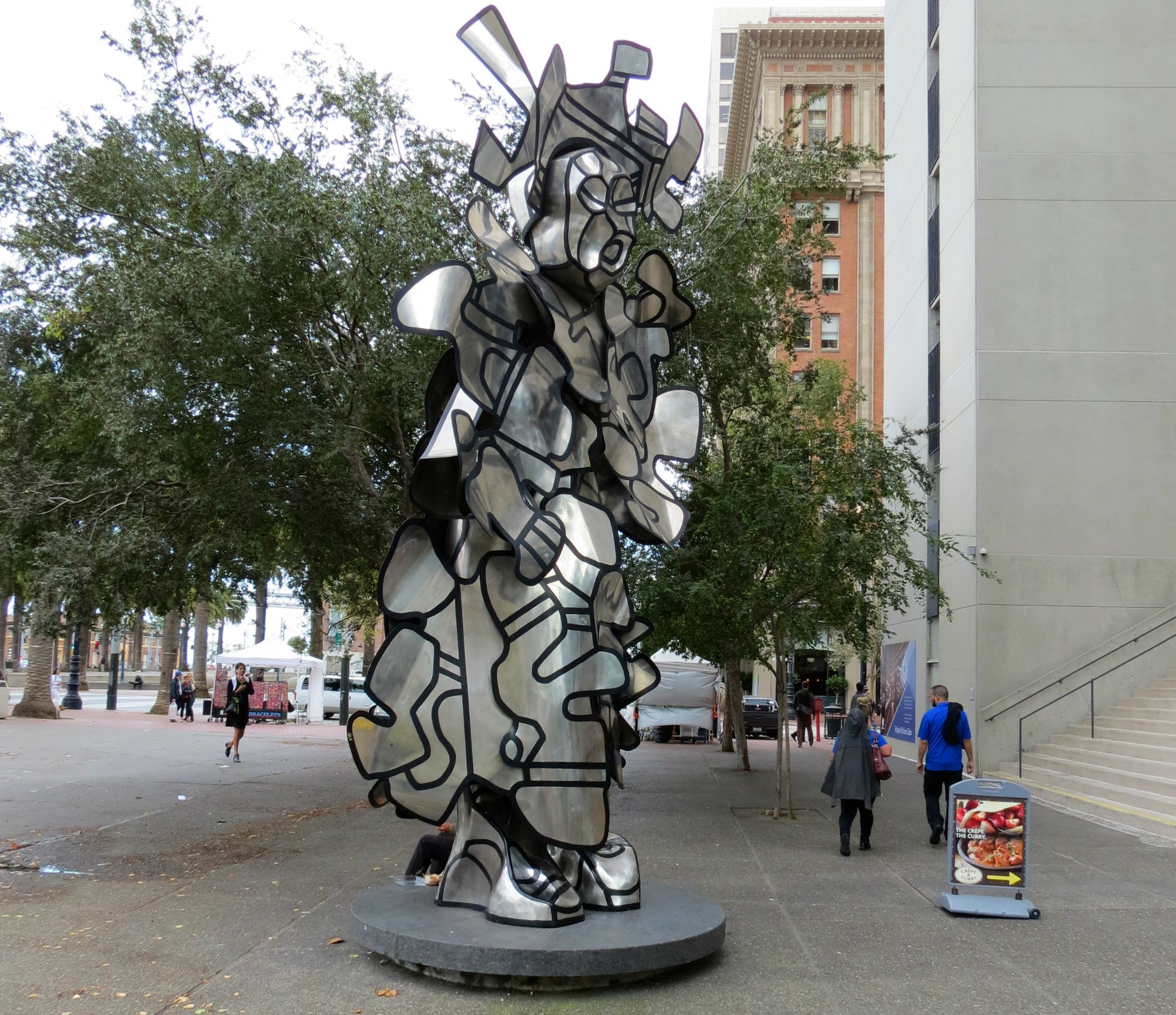 A lot of people explain Dubuffet's Bag Lady as a cartoonish thing. Although, this looks less Cartoon Network and more Syfy to me. For real, the idea of this thing lumbering after you in a back alley after midnight is butt clinchingly scary. Despite Bag Lady's monster mash ready get-up, she had quite the list of suitor-cities ready to welcome her to her forever home. Dubuffet was represented by the Pace Gallery, which lent Le Chiff to Baltimore in 1978, setting up the statue in front of the city's World Trade Center. The city tried and failed to get together the money to buy the piece. They couldn't make it happen in time. The Pace Gallery repossessed the statue and eventually shipped it off to San Francisco, a city with the cash flow to back up its art needs.