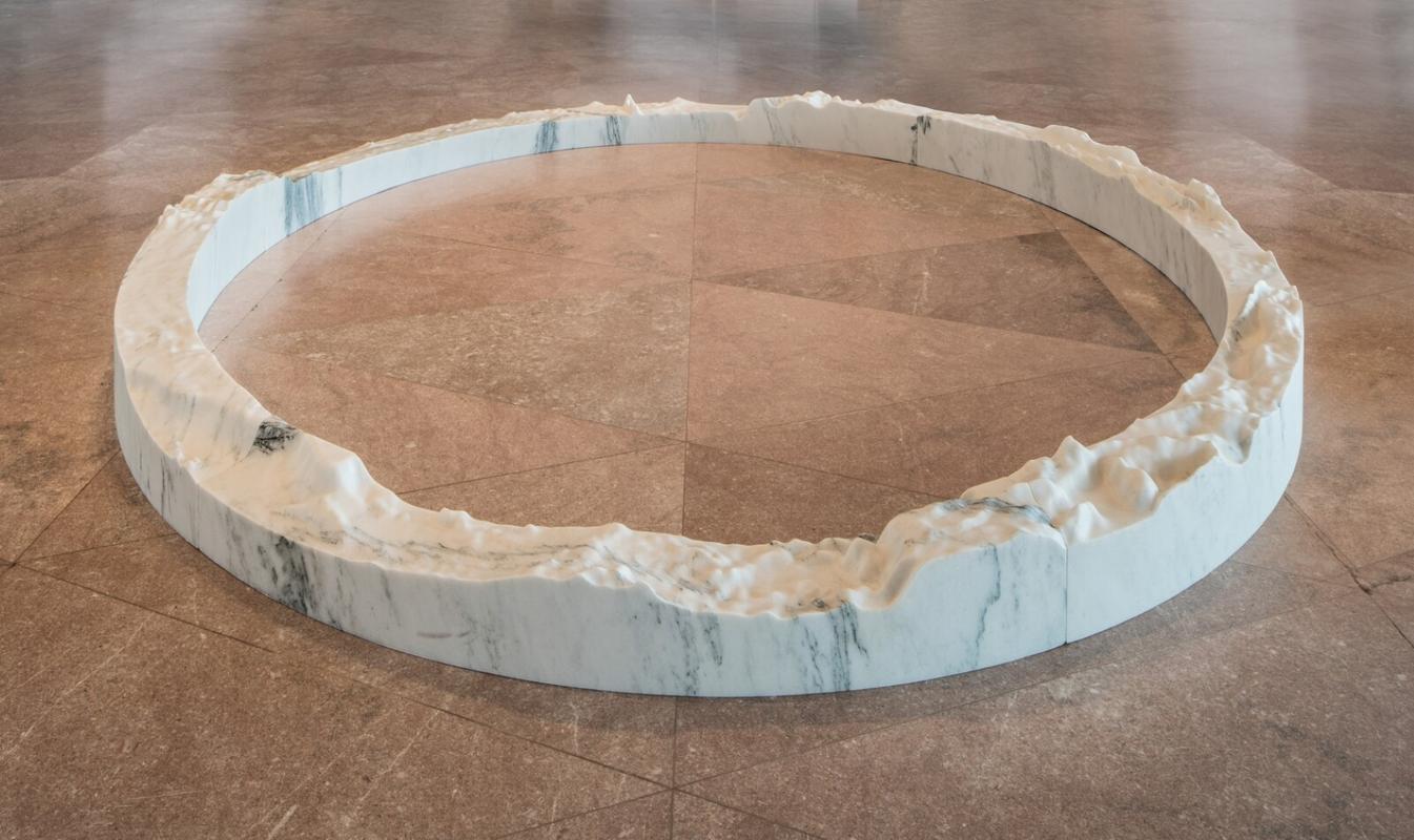 The work is part of a series that consists of three marble sculptures that were exhibited in concentric circles at the Parrish Art Museum titled Arctic Circle, Latitude New York City, and Equator. All of the pieces were cut out of Vermont marble – fancy right? – and represent the topographies of specific locations on the globe. The artist said she wanted to use white marble because it is a traditional and almost cliché material, but it also situates the work within the chronology of art history. In this way Maya Lin's minimalist sculpture reminds us of the importance of the environment, and of the enormous losses that we may suffer because of climate change - which will include art's greatest masterpieces.