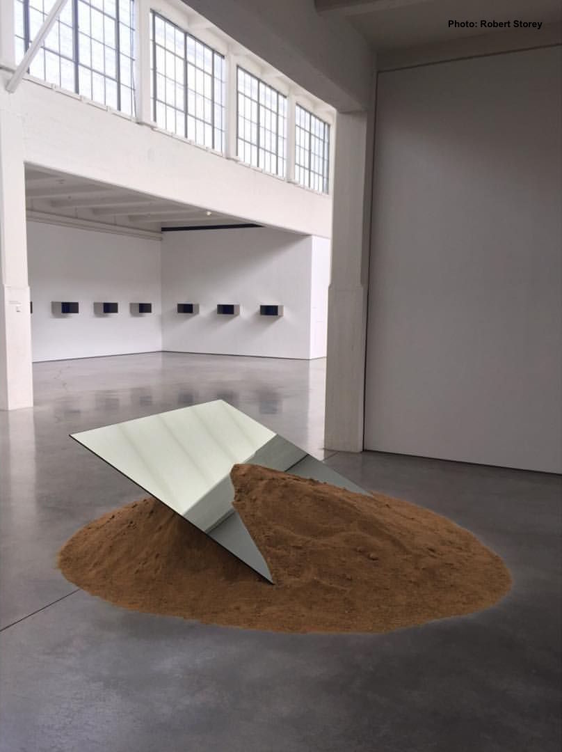 Ok so not only is this mirror useless as a mirror, it’s also negatively helpful for quantitatively understanding anything. But you might get a sense, if you let the sand spread out or the gallery floor grow a mind-jungle, of what time feels like. Will the mirror also turn into sand? What does sand turn into later, does it turn into time? Do you mind if I just, lay on the floor for a minute? Am I sand? Should we make NASA do science like this?