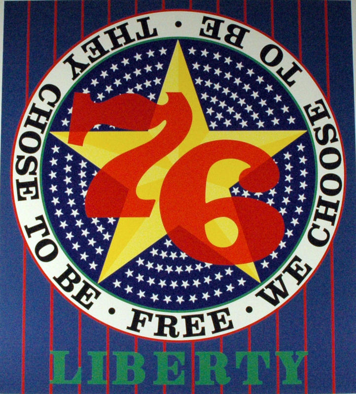 Here though, Robert Indiana is going the opposite direction. This work was made to celebrate the 1976 American Bicentennial and it does so in the most mediocre, non-subversive way possible. We get the ‘76, the mention of freedom, some stripes and two-hundred stars (yes, I counted them), and that is pretty much it. If you are wondering, the quote isn’t any kind of special word play. That being unless it is a reference to Margaret Thatcher’s “When people are free to choose, they choose freedom” which I doubt as she is, you know, British.