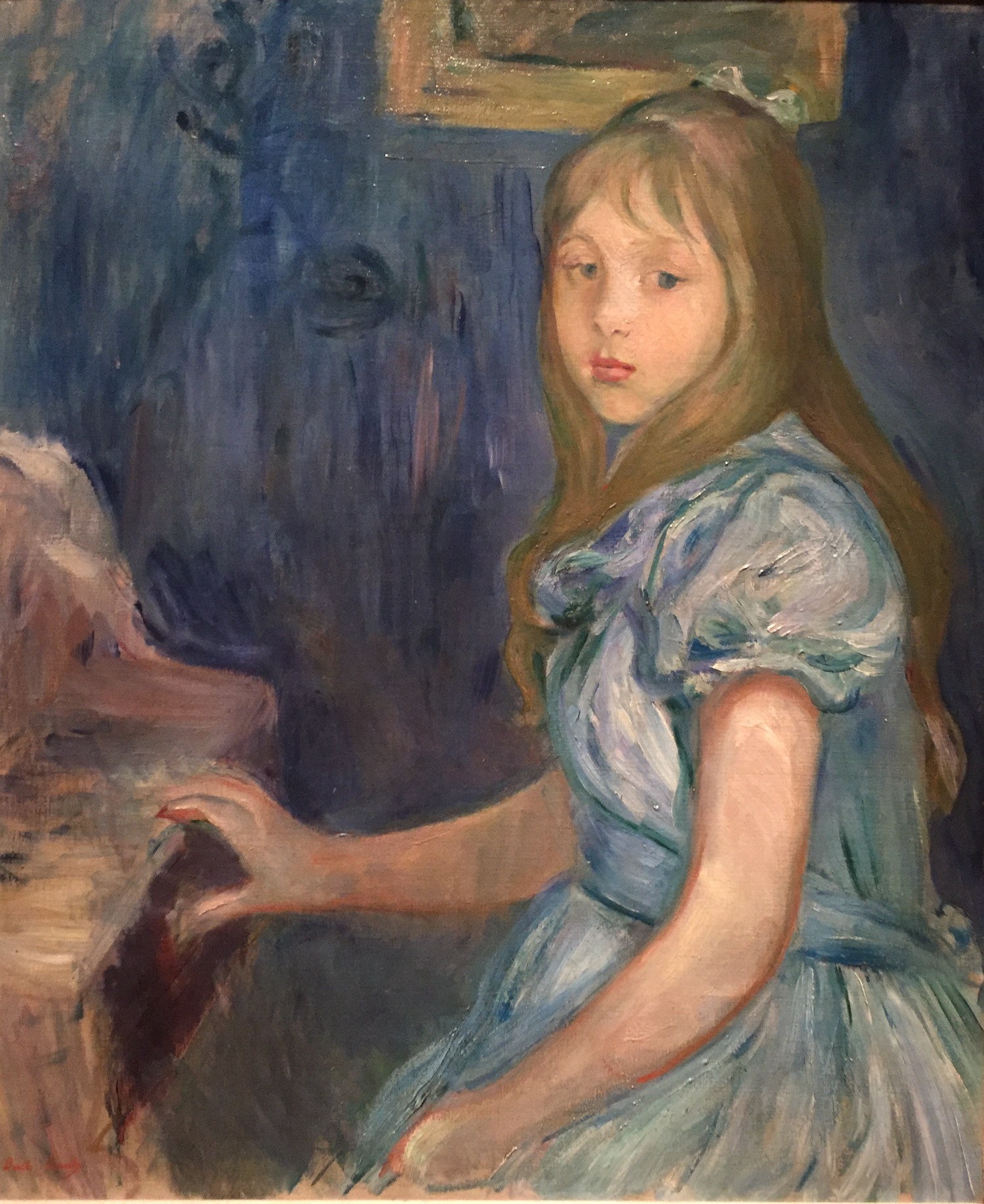 But still, Morisot remained the quintessential painter of contemporary Parisian women, painting women in their domestic duties. Lucie Léon at the Piano is one of the paintings showing interior life of an upper-class girl, who incidentally went on to become a celebrated concert pianist. Julie still maintains that Léon was “an unbearable model.” Morisot’s professionalism didn’t waver, according to Julie, “because Mama overcame most problems in life, she managed to do a marvelous portrait of her.” Props to Julie for remining Morisot’s cheerleader in the room. She goes on, “Lucie is jolly lucky to have this magnificent work of art after doing nothing to deserve it.” If you were raised by a bunch of kooky Impressionists, and your superstar mother had an ungrateful girl for a subject, you’d think them undeserving of a portrait, too.