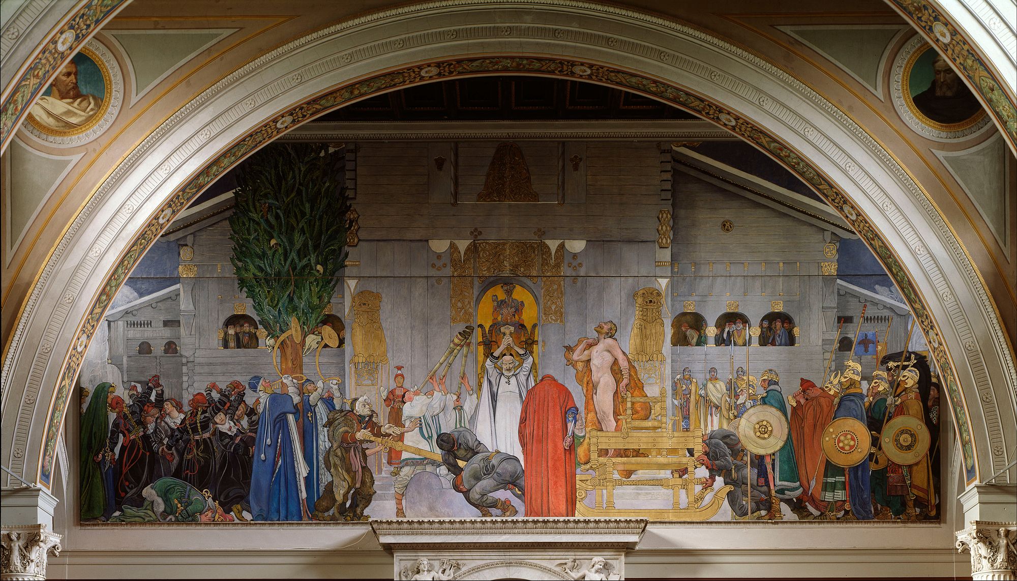 In 1911, Larsson submitted his first sketch for Midvinterblot meaning “Midwinter’s Sacrifice” based on the legend of King Domald from the Ynglinga Saga. In the tale, King Domald is sacrificed to ensure a good harvest after years of famine. It didn’t take long for Larsson to face opposition and criticism to his proposal.