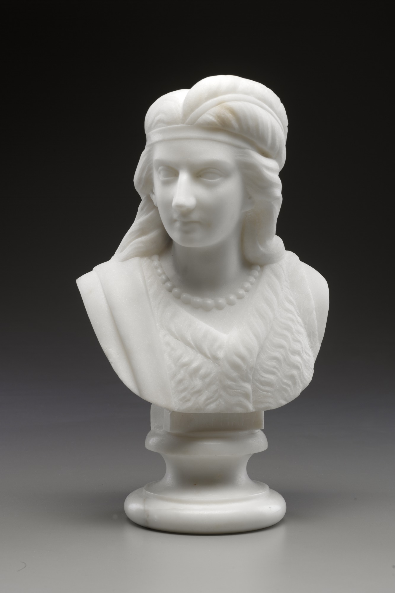 For being listed among the key artists of the neoclassical period, I can see a few stark differences between Mary Edmonia Lewis' head busts and ancient greek ones. The first being that the color is shockingly white, the second being that the texture is super smooth and fragile looking. Even though some greek busts looked smooth, they had a hard look to them. These two facts are probably based off of the material used to carve, which was probably an intentional choice. The base to the sculpture reminds me of this classical piece --> (https://www.bonhams.com/auctions/25881/lot/39/)