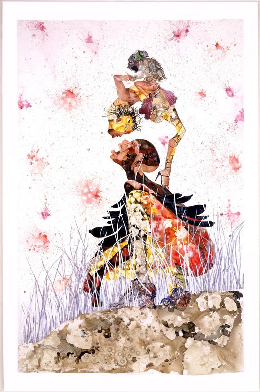 Wangechi Mutu’s Misguided Little Unforgivable Hierarchies looks like a scene out of Cirque du Soleil thanks to the contortions of the figures stacked atop each other.