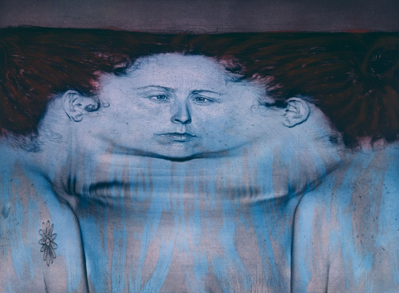 Kiki Smith almost literally skinned herself for this, having her image stretched end to end as though it had been peeled.