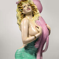 This strange sculpture is a combination of innocent naiveté and raunchy voyeuristic delight…if you’re into bestiality, that is. In this cartoon come to life, a topless Jayne Mansfield (70s actress and Playboy Playmate) is literally and figuratively feeling her feline friend. Half naked, passionately embracing the kitty, so-to-speak, Mansfield fulfills one of Koons-y's favorite artistic strategies: capitalizing on recognizable celebrities in order to sell art.