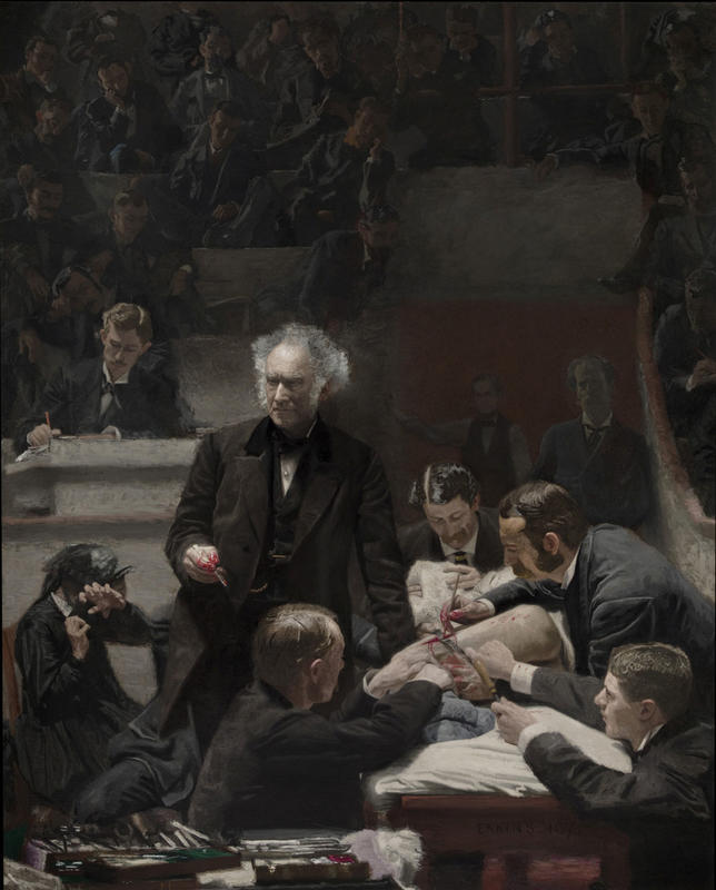 The Gross Clinic or The Clinic of Dr. Gross is an 1875 painting by the American artist Thomas Eakins. It is an oil on canvas and measures 8 feet (240 cm) by 6.5 feet (200 cm).
