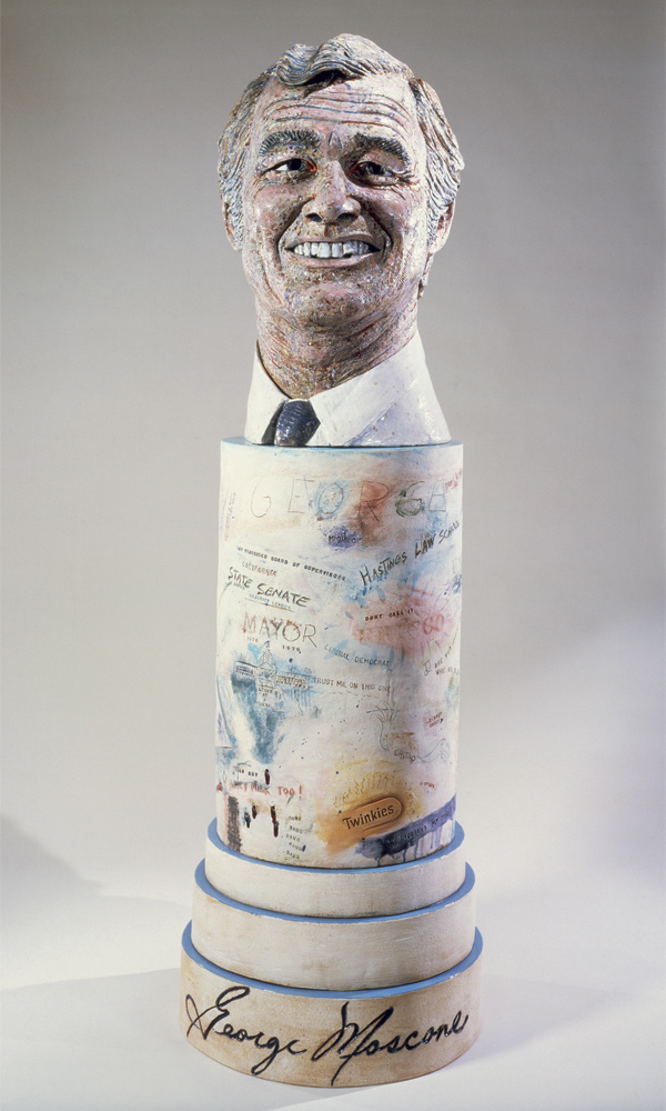 San Francisco. November 27, 1978. The significance of this day may be lost on young San Franciscans and transplants, but it is nevertheless a date that remains with them. Reminders of the City Hall Slayings linger as two names embedded on memorials barely visible through the fog. Those beyond the Barbary Coast have probably heard of Harvey Milk. As the first openly gay person to be elected to public office in California, his murder on that fateful day made him a martyr for the gay rights movement. Less remembered nationally is the first man shot. This man helped put Milk, along with numerous women and minorities in office. As an early proponent for gay rights it was he who repealed California’s sodomy law. As a senator he introduced a school lunch program in California, fought for the rights of the poor and working class, and kept the beloved Giants from moving to Toronto. He was also linked to voting fraud and sex scandals connected to cult leader Jim Jones. His name was George Moscone, Mayor of San Francisco from 1976-1978, and the controversial bust is the perfect tribute to his complex legacy.